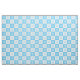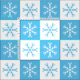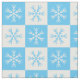 Hellblaue und weiße Schneeflocken wechseln sich auf karierten weißen und hellblauen Plätzen ab, um ein geometrisches Muster zu schaffen, das sich perfekt für Weihnachten oder Winter eignet. Der Stoff ist mit Armbanduhr, Fettviertel und mit der Werft auf 7 Werkstofftypen in der Seitenleiste erhältlich.