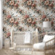 Vintager Charme in jeder Blüte. Cremefarbene Blumenmuster mit hellgrünem Blattwerk,