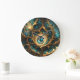 Helle Aquamarine und goldene Fraktal Abstrakte Kun Große Wanduhr