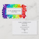 Ein heller Entwurf, der einen hell farbigen Aquarellregenbogenentwurf auf einem weißen Hintergrund mit einem weißen Kasten in der Mitte für Ihren Namen und Beruf kennzeichnet.