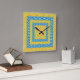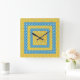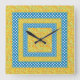 Eine hübsche quadratische Wall-Uhr, mit einem Mix'n'match aus goldenen Düften und blauen und weißen Jumbo-Polka-Punkten. Teil der Posh & Painterly 'Daffy-down-Dillies' Kollektion.