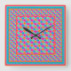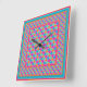 Eine elegante Square Wall Uhr, mit einem traditionellen islamischen Muster in hellrosa, orange, türkisblau und hellgrün, in Weiß umrissen; aus der Posh & Painterly 'Islamic' Kollektion.