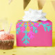 Modern. Kühne. Hell und fröhlich. Dieses unverwechselbare Weihnachtsgeschenk hat einen tiefrosa Rosenhintergrund mit großen Schneeflocken in Türkis, Birnen und Mango Orange. Diese rosa Weihnachtsverpackung fügt Ihren Urlaubsgeschenken eine lebendige Touch hinzu.