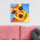 Fun hell gemalt Kangaroo Tier Gesicht Leinwand Druck in blau, rot und gelb, mit Touchs von grün, weiß und große schwarze Augen. © Reproduziert aus einem Acrylgemälde von Sarah Trett. www.sarahtrett.com für www.mylittleeden.com