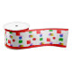 Helle, farbige Quadrate und Kreise, rot Satinband
