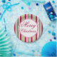 Helle, festliche, cremefarbene Streifen zieren diese fröhlichen Weihnachtszeitung-Teller. Diese Teller sind ideal für Weihnachten, Weihnachts-Abendessen, ein Weihnachtsfest, Feiertag, Party, Open House, Cookie-Austausch, Cookie-Swap, Schule, Kirche, etc... Das Design ist aus der Originalkunst.