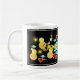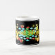 Freuen Sie sich auf eine angenehm eingerichtete Tasse in lebhaften und lebhaften Farbtönen mit Blasen, Herz und Strahlen aus Licht, um den Tag in Ihrer besten Stimmung zu beenden