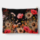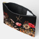 Helle Frühlingsblumen auf schwarzer Monogramm Zubehörtasche