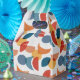Ein wunderschönes, modernes, orangefarbenes, rotes und blaues, geometrisches Retro-abstraktes Muster. Ideal für Geschenke, Wohngestaltung, Kinderzimmer und Dekoration im Party. Ein ideales Design für jeden, der abstrakte Formen, moderne Kunst, moderne Designs aus dem Mittelalter Liebe.