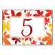 Passen Sie die saisonalen Herbstlaube Hochzeit Tischnummern und eine andere Karte für jeden Tisch auf Ihrem September, Oktober oder November Herbst Heirat Empfang, Brautparty oder Party erstellen. Diese klassischen und individuell gestalteten Hochzeitskarten für Herbst und Herbst verfügen über mehrfarbige Blätter in Rot, Gelb und Orange mit weißem Hintergrund.