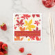 Die natürlichen Herbstlaube Hochzeitspapier Napkins können mit den Namen der Braut und Bräutigam personalisiert werden und das Datum für Ihre September, Oktober oder November Herbst Brautparty oder Ehe Empfang Cocktail Stunde. Diese individuellen Einwegservietten verfügen über rote, gelbe und orangefarbene Herbstlaub mit weißem Hintergrund.