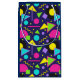 Diese Geschenktasche weist geometrische Formen in leuchtenden, lebhaften Farben auf einem tiefmarineblau-tiefen Hintergrund auf. Es ist in 4 verschiedenen Größen erhältlich und hat eine Retro-Vibe, dass wir nur Liebe!