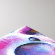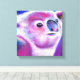 Fun hell gemalt Koala Tier Gesicht Leinwand in lila, blau, weiß mit Hinweisen auf Herbstorange © Reproduziert aus einem Original Acrylgemälde von Sarah Trett. www.sarahtrett.com für www.mylittleeden.com