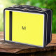 Ein zeitgenössischer Metallkochkasten, der minimalistisch in hellgelb und schwarz gehalten ist. Personalisieren Sie Ihre Initialisierung, die ein stilvolles Monogramm bilden wird. Die Lunchbox ist sowohl vorne als auch hinten im gleichen Design gehalten und bietet ein bemerkenswertes Accessoire für Arbeit, Uni oder Reisen.