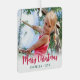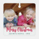 Feiern Sie mit einem modernen 2-Foto-Quadratmeterdekor die Urlaubsfreuden. Die Bilder und der gesamte Text auf dieser Vorlage sind einfach zu personalisieren und können auf Vorder- und Rückseite unterschiedlich oder gleich sein. Es kann alle Formulierungen enthalten, wie z.B. Frohe Weihnachten, glückliche Feiertage, beste Freunde, Kinder & Familiennamen, etc. Das helle Cranberry Rot und Grün Design zeichnet sich durch eine handgeschriebene Schrift-Kalligraphie, eine minimale klassische Typografie und zwei Fotos Ihrer Wahl aus. Dieser einzigartige elegante Sake fügt den Xmas Zuhause-Dekorationen eine stilvolle festliche Touch hinzu. Frohe Weihnachten!