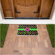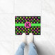 Mit dieser unterhaltsamen Türmatte in schwarz, mit verschwommenem Neonrosa, Grün und gelben Polka-Punkten, verleihen Sie Ihrem Eingangstor Farbe. Eine hellgrüne Band, in der Mitte der Matte, hat einen rosa Kreis mit einem großen schwarzen Grunge ein Buchstaben Monogramm bereit, um zu personalisieren.