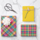 Helle Orange, Rosa, Blau, Gelb und Grün Kariert Geschenkpapier Set