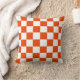 Ein Kissen mit einem hellen, orangen und weiß karierten Muster. Passen Sie die orangefarbene Farbe, die Mustergröße unter anderen Optionen an.
