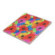 Eine auffällige Keramik mit einem lebendigen Muster aus Pappkuchen und Maisblumen, die von Judy Adamson handbemalt wurde. Fügen Sie einen Holzrahmen hinzu und verwenden Sie ihn als Trivet.