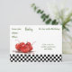 Helle rote Kirschen auf einem karierten Tablettenk Einladung