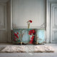Helles rotes Papi türkisfarbenes Aquamarines, dekoutenförmiges Gewebe. Finden Sie die passende Portraitkunst zu diesem Set in meinem Shop.