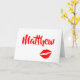Überraschen Sie ihn mit einer herzlichen Grußkarte, die seinen Namen in einem eleganten roten Schriftart neben einem lebendigen roten Lippenstift-Druck zeigt. Perfekt für den Valentinstag, Geburtstage oder einfach nur lassend ihm zu wissen, dass er in deinem Kopf ist. Fügen Sie Ihre persönliche Touch mit einer handgeschriebenen Nachricht hinzu und machen Sie jeden Augenblick zu einem besonderen Erlebnis. Personalisieren Sie Ihre Karte noch heute!