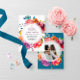 Helle Sommer farbenfrohe runde blumenreiche Hochze Einladung