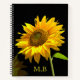 Helle Sonnenblume im schwarzen Hintergrund Notizbuch