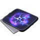 Dieses Notebook-Computergehäuse ist ein lila und blaues Fraktal-Bild eines 5-Punkte-Sterns in einem umgebenden Farbwirbel, alles auf einem dunklen Hintergrund.
