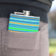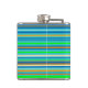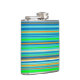 Diese reizende angesagte Flasche wird mit einem lebhaften abstrakten Muster des Grüns, des Goldes, der Orange, des Blaus, des Türkises und der weißen horizontalen Streifen verziert.