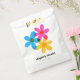 Diese leicht anpassbaren Gastgeschenk Hochzeit-Taschen bieten einen modernen Retro-Stil mit Hippie-Blume in hellgelb, blau und magentafrosa. Die handgezeichneten Grafiken sind so konzipiert, dass sie den klassischen Risograph-Druck nachahmen. Der gesamte Text auf diesen Taschen ist für Ihre individuelle Touch bereit, mit dem einfachen Schwarzweißdruck auf weißem Hintergrund.