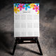 Dieses maßgeschneiderte Hochzeitsstempelposter bietet einen modernen Retro-Stil mit Hippie-daisy Blume in hellgelb, blau und magentafrosa. Die handgezeichneten Grafiken sind so konzipiert, dass sie den klassischen Risograph-Druck nachahmen.