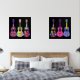 Helle Farben vor schwarzem Hintergrund, so schön sind diese Hippie-Stil oder "boho" Stil Gitarren in Reihen von drei! Sehen Sie mehr von diesem Stil mit Gitarren auch! Was für ein tolles Geschenk für einen Musiker/Liebhaber/Gitarrenspieler! Entworfen von Cherie's Art, keine ai Art!