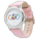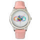 Kinderuhr aus Edelstahl mit rosa Lederarmband