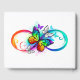 Vielfarbig, hell, Symbol der Unendlichkeit mit Regenbogen, detaillierter Schmetterlingsmonarch. Regenbogenschmetterling. Rainbow Unendlichkeit.