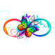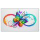 Vielfarbig, hell, Symbol der Unendlichkeit mit Regenbogen, detaillierter Schmetterlingsmonarch. Regenbogenschmetterling. Rainbow Unendlichkeit.