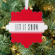 Dieses lustige Weihnachtsgeschenk-Design bietet weiße Mitte-Rennstreifen mit hoher, schwarzer Typografie LET IT SNOW-Text, der personalisiert werden kann. Die breiten oberen und unteren Streifen sind hell rot.