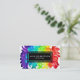 Ein heller Entwurf, der einen hell farbigen Aquarellregenbogenentwurf auf einem weißen Hintergrund mit einem Flugschreiber in der Mitte für Ihren Namen und Beruf kennzeichnet.