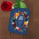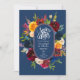 Hell, Aquarell, Multicolor, ovaler Blumenrand mit marineblau Hintergrund und Save the Date Vorlagen in Weiß.