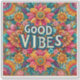 Eine lebhafte Anordnung komplizierter Blumenmuster platzt mit Farbe, was einen aufregenden "Good Vibes"-Satz in der Mitte unterstreicht. Die hellen Orangen, Pink und Blues schaffen eine dynamische Atmosphäre, die sich perfekt eignet, um jeden Raum mit positiver Einstellung zu verbessern.