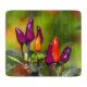 Diese hellen und bunten Chili-Paprikaschoten, die Sorte "Lila Tiger", machen ein interessantes Design für diese Glasverpackung