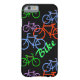 Hier ist ein lustiger Fall, dass jeder Fahrradfahrer Liebe würde! Die roten, blauen, lila und grünen Fahrräder sind auf einem schwarzen Hintergrund verstreut. Der in hellgrün gehaltene Text sagt BIKE, aber Sie können ihn ändern oder personalisieren, wenn Sie wollen. Hell und farbenfroh!