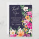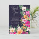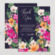 Mit diesem eleganten, hellen und kühlen, modernen Sommer-Blume-Illustration im Frühjahr mit hübscher übergroßer Blume und Pinsel-Script-Brautparty bedanken Sie sich bei einer Karte mit einer modernen Kalligraphie-Typografie mit leuchtendem Neonrot, Orange, Grün und Gelb auf Marineblau