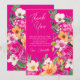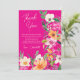 Mit dieser eleganten, hellen und kühlen, modernen Sommer-Blume-Illustration im Frühjahr mit hübscher übergroßer Blume und Pinsel-Skript-Brautparty bedanken Sie sich bei einer Karte mit einer modernen Kalligraphie-Typografie mit leuchtendem Neonrosa, Orange, Grün und Gelb auf leuchtendem Neonrosa