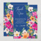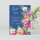 Mit dieser eleganten, hellen und kühlen, modernen Sommer-Blume-Illustration im Frühjahr mit hübscher übergroßer Blume und Pinsel-Script-Brautparty bedanken Sie sich bei einer Karte mit einer modernen Kalligraphie-Typografie mit leuchtendem Neonrot, Orange, Grün und Gelb auf blau
