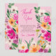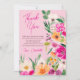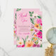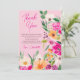 Mit dieser eleganten, hellen und kühlen, modernen Sommer-Blume-Illustration im Frühjahr mit hübscher, überdimensionaler Blume und Pinsel-Drehbuch-Brautparty bedanken Sie sich bei einer Karte mit einer modernen Kalligraphie-Typografie mit leuchtendem Neonrosa, Orange, Grün und Gelb auf Retro-Pastellrosa.