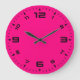 Helle und lustige magenta rosa Uhr mit schwarzen stylischen Zahlen.