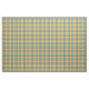 Gewebe mit einem hellen Gelben, Orange und seafoam grünen karierten, mit den blauen und weißen Akzenten. Ein Plaidwerx ursprüngliches Muster in der Modeindustrie, die Farben neigt.