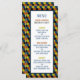 Diese Menüs sind perfekt für alle, die ein Party oder eine Veranstaltung planen. Das Design weist einen stilvollen geometrisch gemusterten Hintergrund in Schwarz, Blau, Orange und Gelb mit einem dekorativen blauen Rahmen auf und ist mit passender bearbeitbarer Formulierung fertig. Das schlichte Design kann personalisiert sein, um Ihre besondere Veranstaltung zu Anzug und wird die perfekte Menükarte für jedes moderne thematische Party, einschließlich Brautparty, Verlobungen, Polterabende, Geburtstagspartys und vieles mehr.
