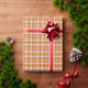 Geschenkverpackung mit einem hellen karierten Muster Halloweens in den Schatten der goldenen Orange, Limones Grün, lila und Sahne. Ein Plaidwerx ursprünglicher Tartanentwurf.